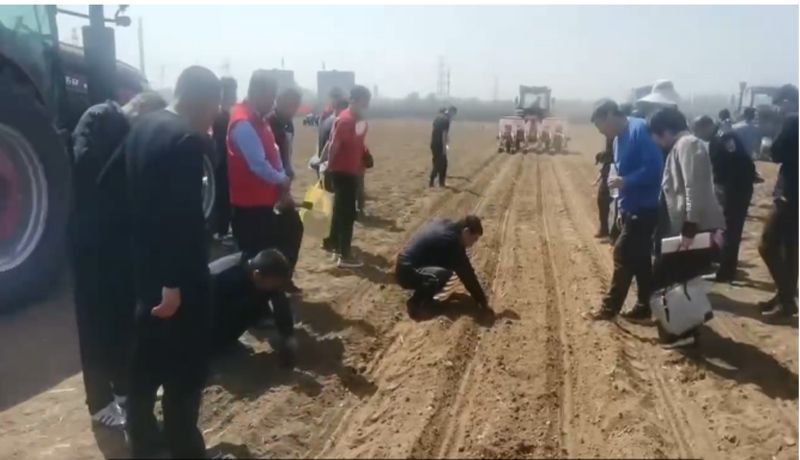 2024年4月12日,我廠生產(chǎn)的2BMYFS-6型氣吸式高性能玉米單粒精量播種機(jī)參加了濟(jì)南市農(nóng)業(yè)機(jī)械技術(shù)推廣站組織的在章丘龍山鎮(zhèn)召開的“濟(jì)南市高性能精播精作機(jī)械作業(yè)演示現(xiàn)場會暨農(nóng)機(jī)地頭展”。企業(yè)李文華銷售經(jīng)理介紹了產(chǎn)品機(jī)構(gòu)、性能特點和使用注意事項,并進(jìn)行了現(xiàn)場演示。2BMYFS-6型氣吸式高性能玉米單粒精量播種機(jī)采用進(jìn)口風(fēng)機(jī)和排種器,風(fēng)力穩(wěn)定可靠,確保不漏種;進(jìn)口排種器采用兩面清種,確保單粒排種;并且產(chǎn)品已獲得農(nóng)業(yè)機(jī)械鑒定證書,購買可享受國家農(nóng)機(jī)購置補(bǔ)貼。